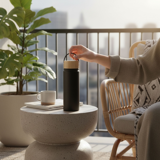 Matière : 100% acier inoxydable, couvercle en bambou et polypropylène
